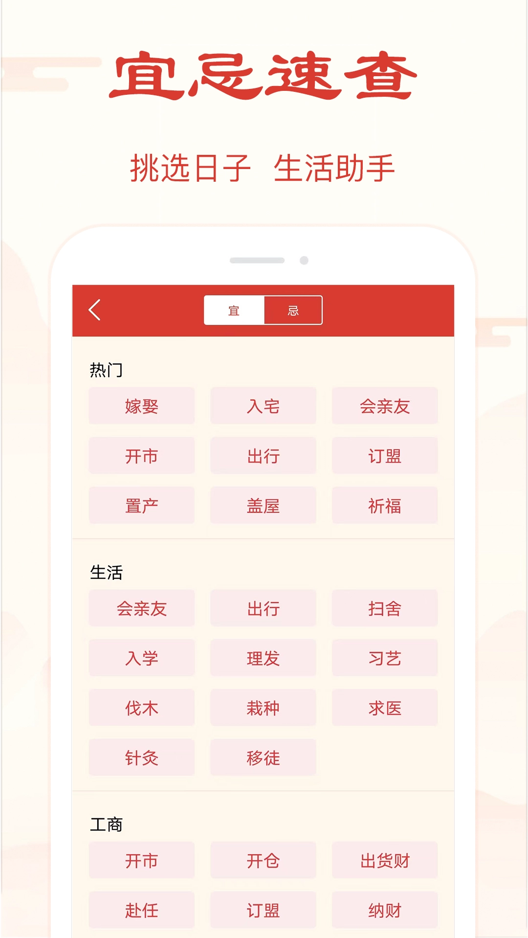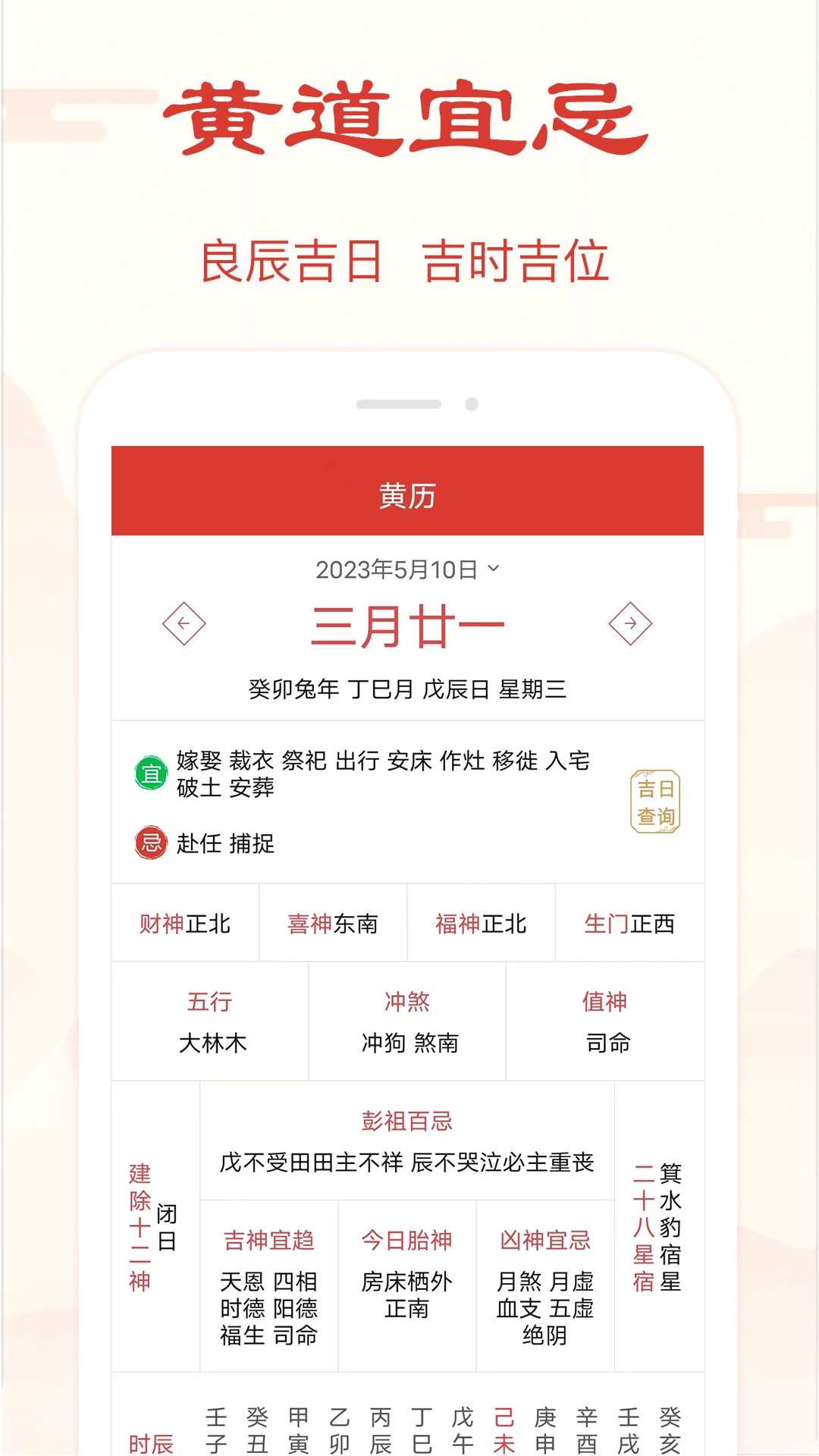 还有万年历、时辰表、吉日查询、黄历查询等实用工具