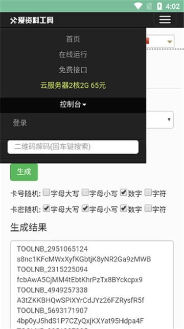 2.可以生成游戏点卡、优惠码、数字礼品卡、支付密码、IP卡等等这些常见的卡密类型