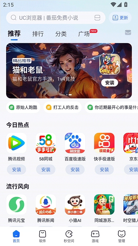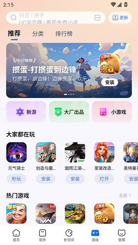 3、向用户推荐当下最热门的游戏或应用软件,让你轻松成为手机达人。