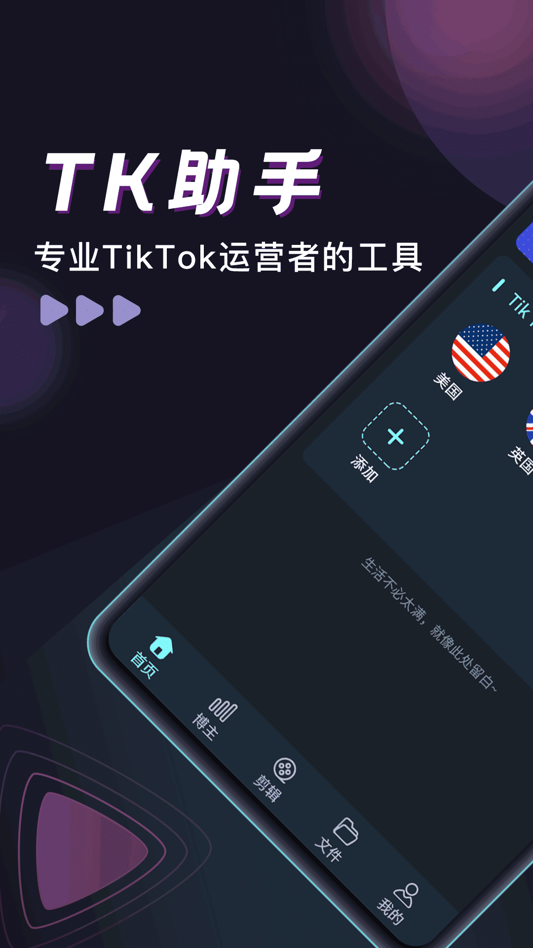 TK助手是一款专业的Tik Tok运营者工具,软件内拥有许多非常强大的功能,人性化的操作方法,专为广大自由职业者提供互联网技能、短视频运营等视频课程在线学习,多国多账号,没有任何门槛,有兴趣的朋友不妨来下载体验一下吧!