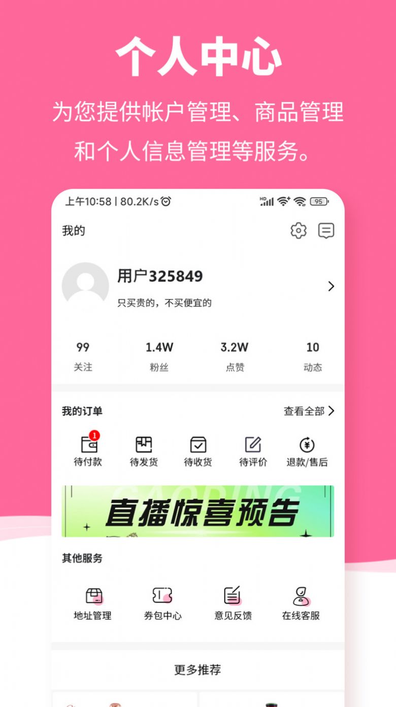 1、根据用户的浏览记录、购物偏好和习惯,提供个性化推荐服务,为用户带来更加便捷、智能的购物体验;