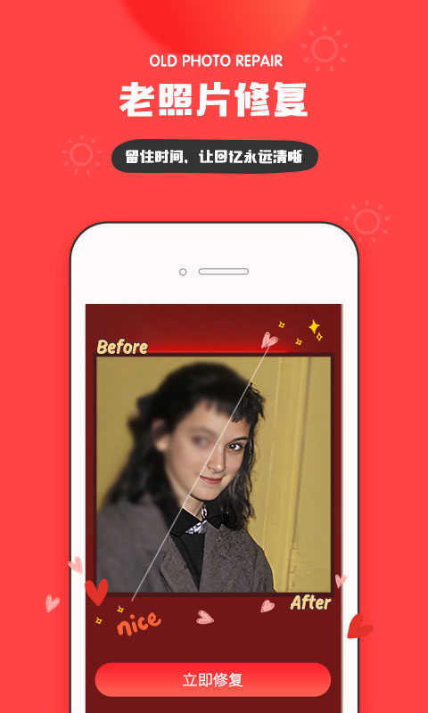 美颜P图、滤镜笔刷、贴纸玩字和照片修复,功能一应俱全,再也不担心下一堆美图软件占内存啦!