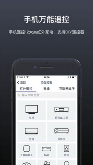 场景功能:看电视、看盒子、看影碟,一个界面遥控多个电器,再也不用烦恼使用哪个遥控器了。