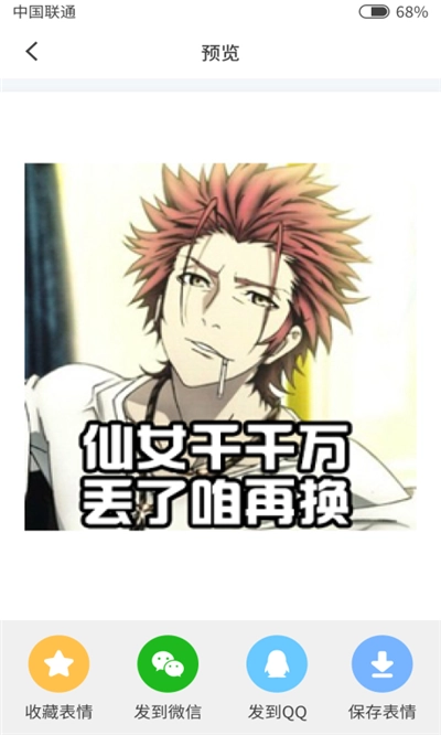 4、即时分享,简单方便,将自己喜欢的表情包分享给亲朋好友,对方点击立即使用。