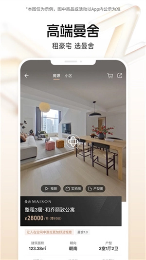 2.实景看房,通过VR眼镜模拟实房,可在手机上进行实景看房,看到每一个细节,提高租房选房的精准度。