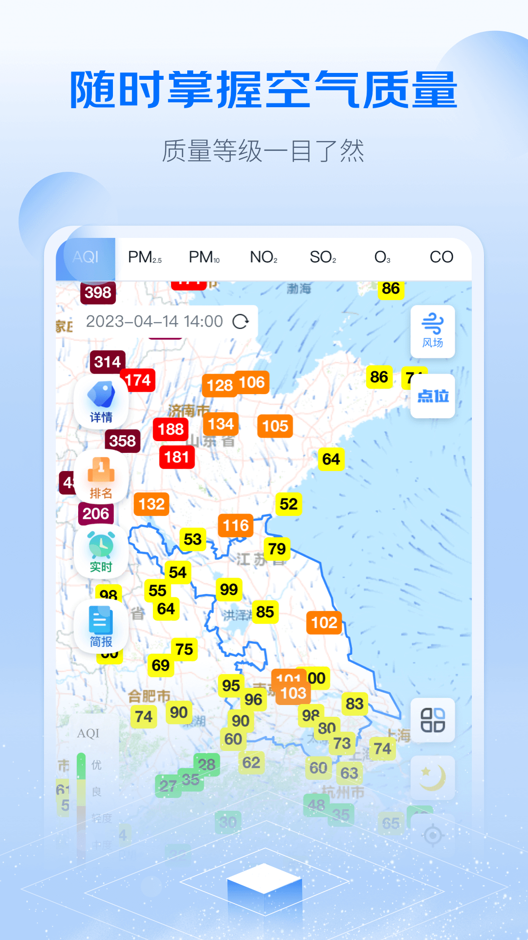 2、提供迅速便捷的查询服务和丰富的历史数据,让用户更好地了解江苏地区的空气质量状况;