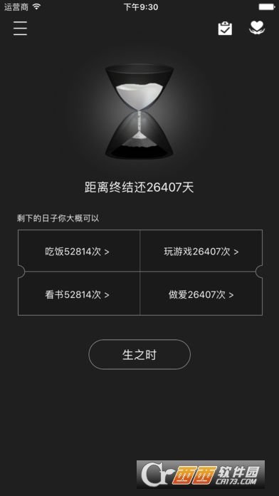 --在死之终界面选择自己期望的年龄,一生就可以帮您估算还可以陪伴父母多少次,可度过多少个周末,多少次的睡眠,多少局游戏以及可自定义自己认为有价值的项目。