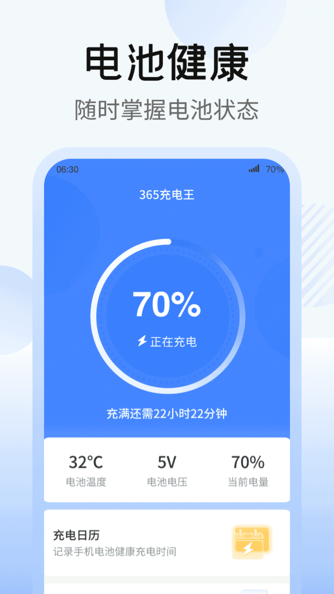 【充电日历】记录每日健康充电信息,完成健康充电打卡,为手机快速运转护航。