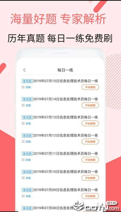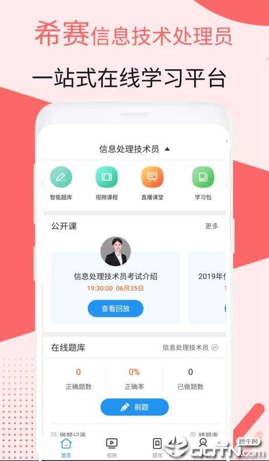 智能题库有每日一练、历年真题、模拟试题、高频考点、知识点练习等海量试题;10万+的题库数据,随时随地打开手机刷题