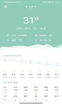 3、软件界面清新简洁,使用方便,随时掌握当地天气变化。