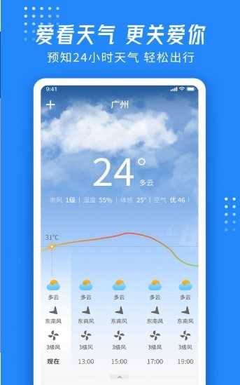 2、24小时天气预报:当日天气变化趋一目了然,温差变化提前预防;