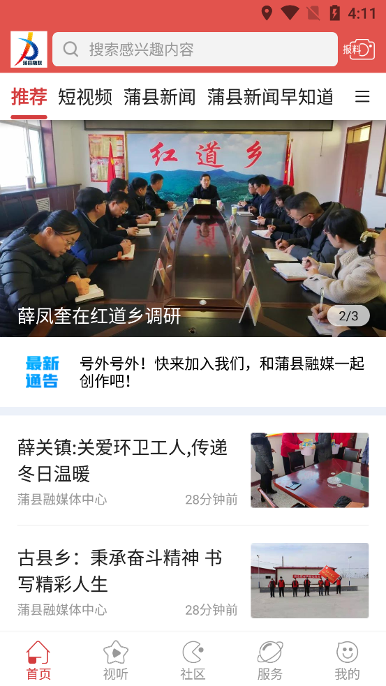 蒲县融媒app是为蒲县本地人打造的一款移动资讯类APP。