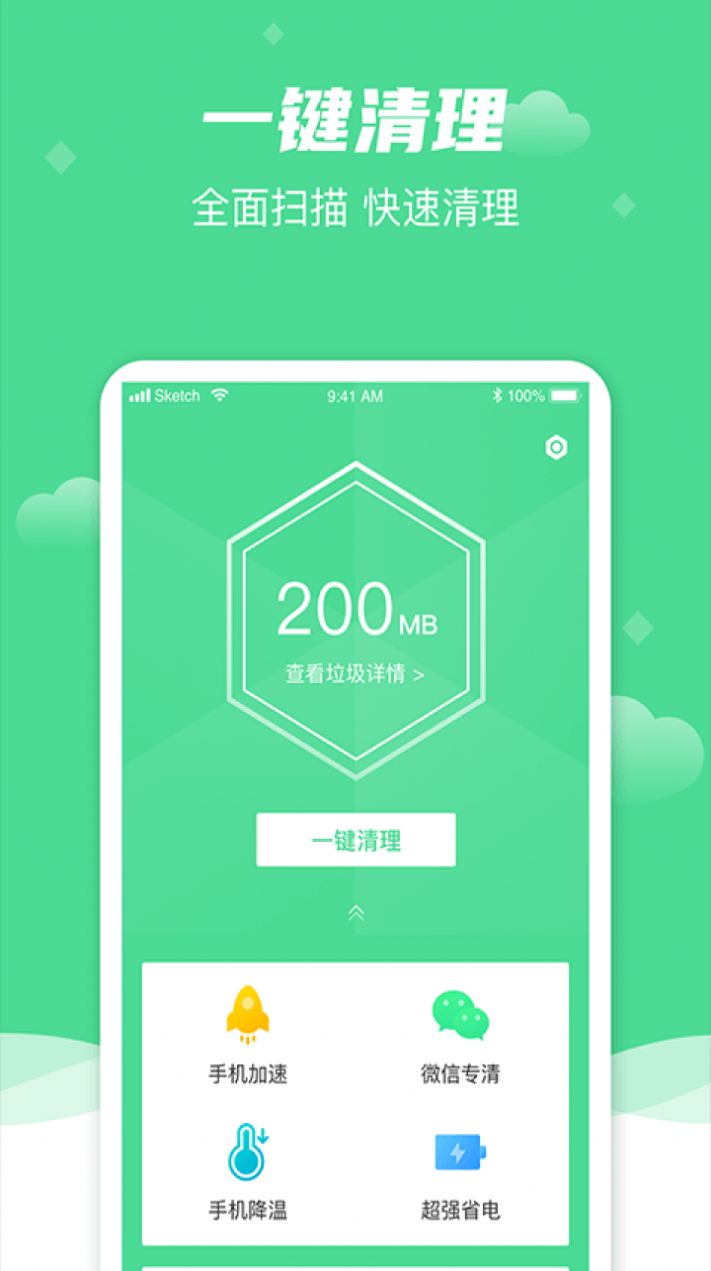 1、帮助用户清理手机内存、垃圾文件、提速优化的工具,是一款轻量级的手机清理软件;
