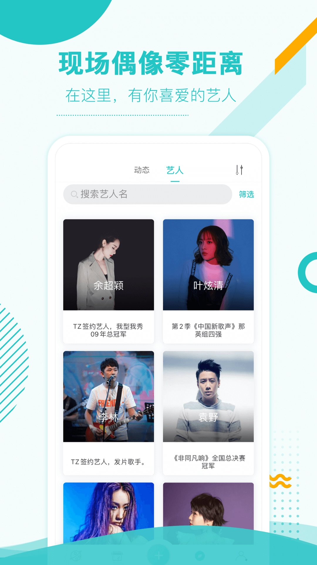 关注追踪喜爱艺人的最新动态,收听最新单曲,观看演出视频