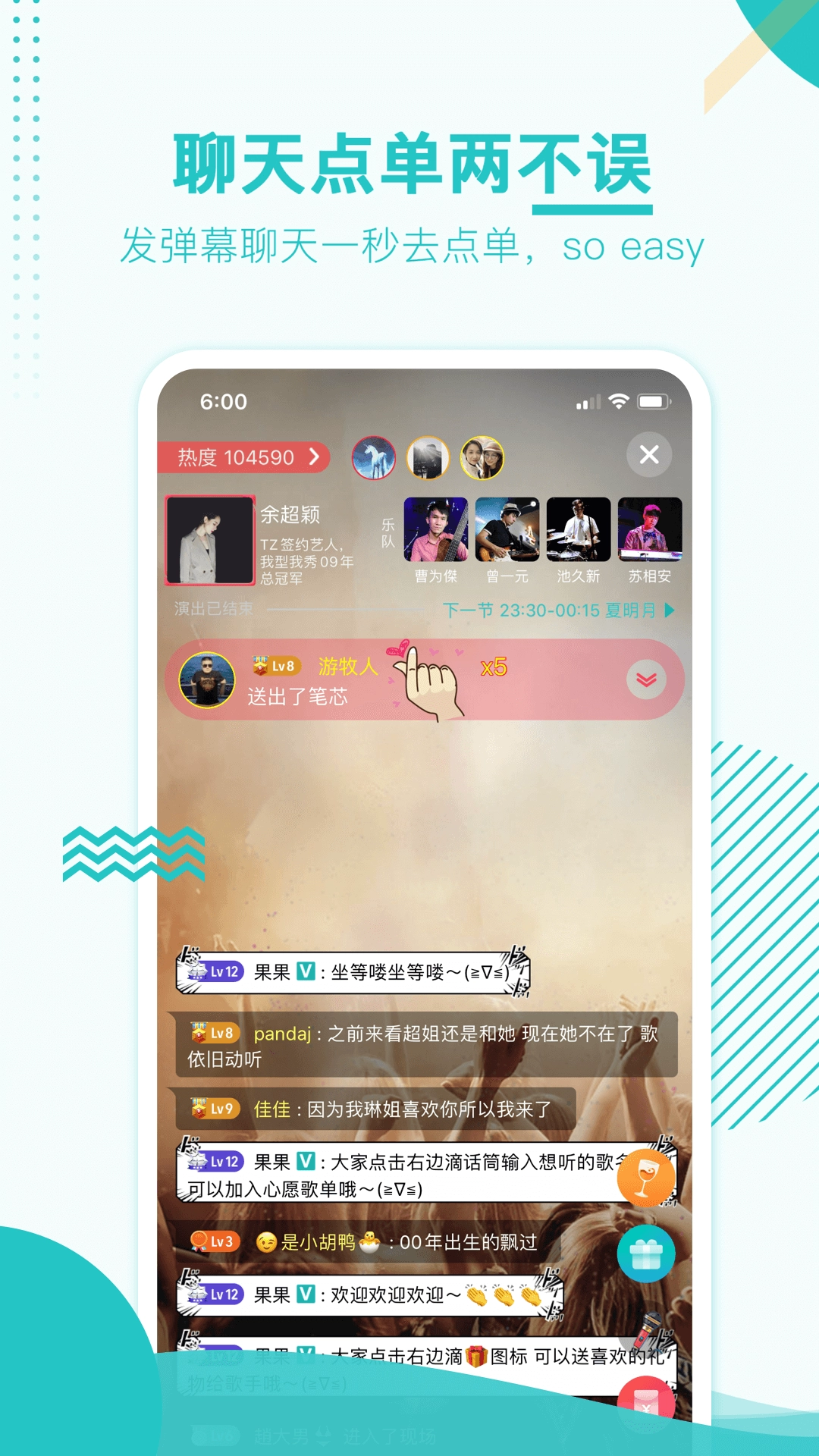 浏览演出安排,在线下单点歌送出祝福,