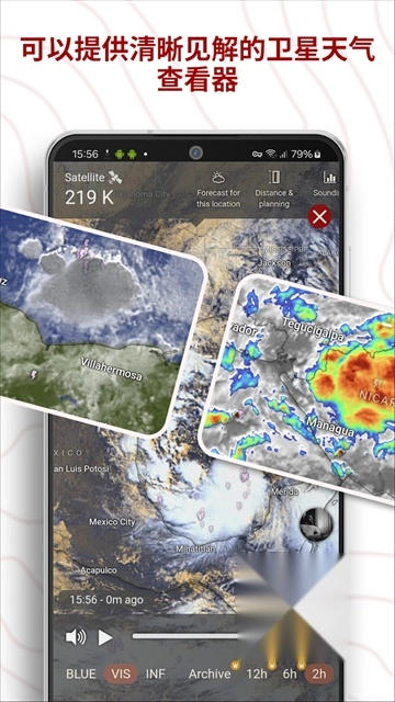 1.独特的视觉化风格呈现气象数据,使用户可以更加直观地了解天气情况