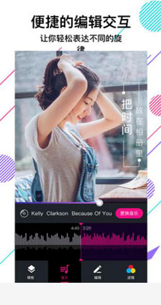 3、视频MV的每一个片段你都能便捷的编辑,美化和定义;可视化你每个阶段的成长,分享你每一刻的快乐。