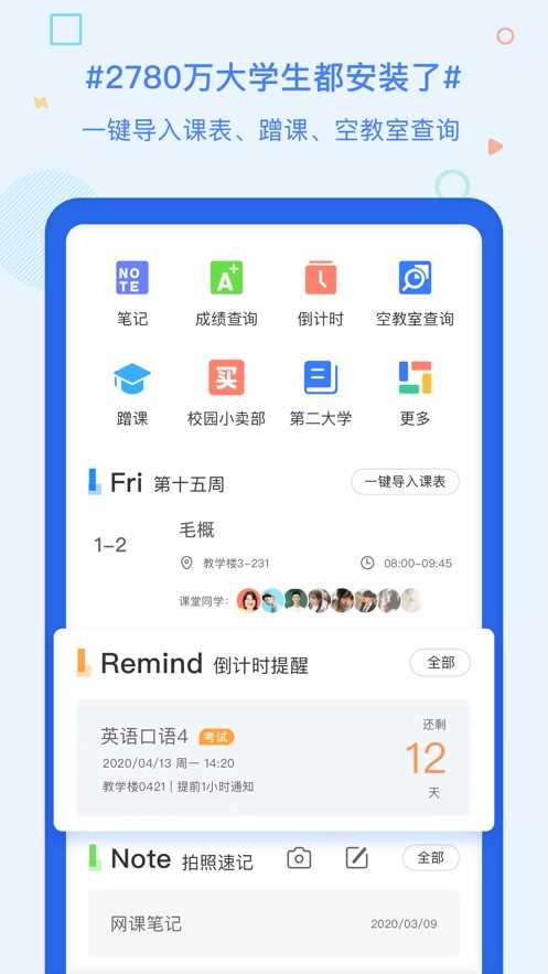 超便捷的一键导入课表功能,每天超过300万位同学在这查看课表
