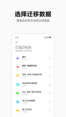 快速便捷的数据迁移:小米换机app支持快速迁移手机上的所有数据,包括短信、通讯录、相册、音乐、视频等等。只需要几个简单步骤即可完成整个迁移过程,无需繁琐的手动操作。