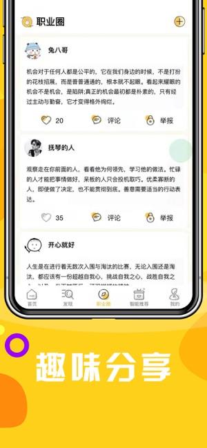 2)设有互动社区,方便用户分享兼职经验、推荐各类兼职工作。