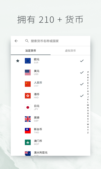 - 货币切换:右滑切换 158 种法定货币