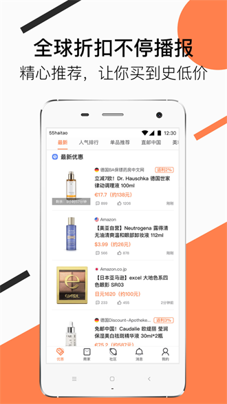 3、[实时播报]全球折扣24小时不停播报,不错过任何一个好东西