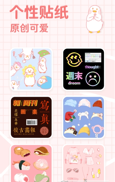 拼图鸭相机app最新版是非常好用的美颜相机类型软件,这个拼图鸭相机下载最新版APP中提供了多种滤镜供用户选择,喜欢拍照的小伙伴不能错过的一个软件,特别是可爱的小鸭子图标,你就是最靓的那个人,个性原创可爱贴纸自由选择,快来这里下载吧!