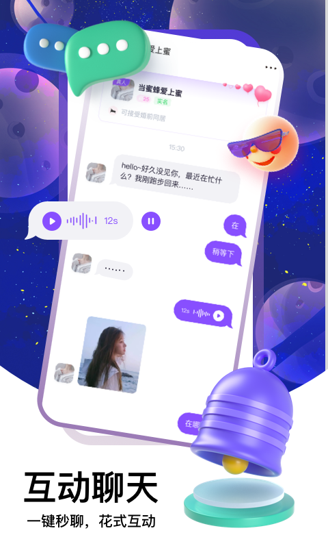 兴趣约会、在线互动,和兴趣相投的女生畅聊。一键心动速配交友,快速匹配异性单身对象,深夜不再孤单,高颜值小姐姐排队接收你的视频约聊天邀请,这一刻,她的时间只属于你!简单、轻松、惊喜,在相见同城聊天、你只要挑有眼缘的开聊即可!2265开始甜蜜同城邂逅之旅