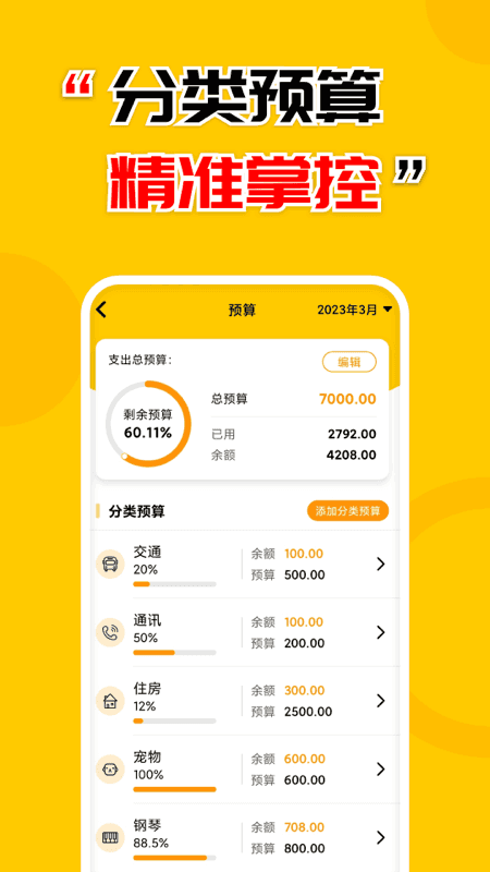 实时预算提醒,用户可以设置预算并实时掌握自己的收支情况