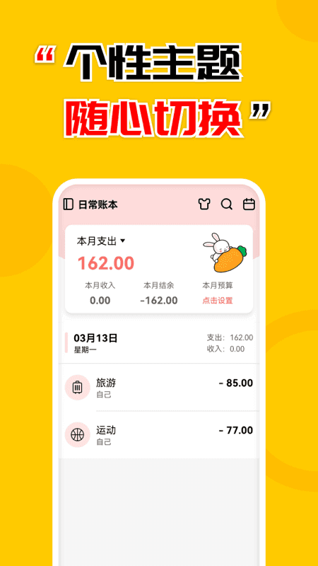 更换账本皮肤:个性化皮肤,记账页面更美观;