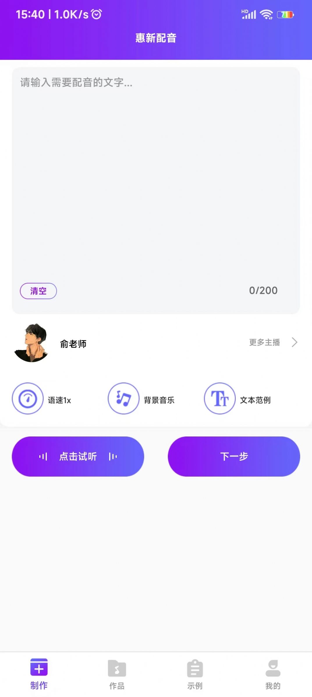 3、通过智能语音识别技术,可以自动将录入的文本转换成对应语音,轻松满足用户不同场景下的配音需求。