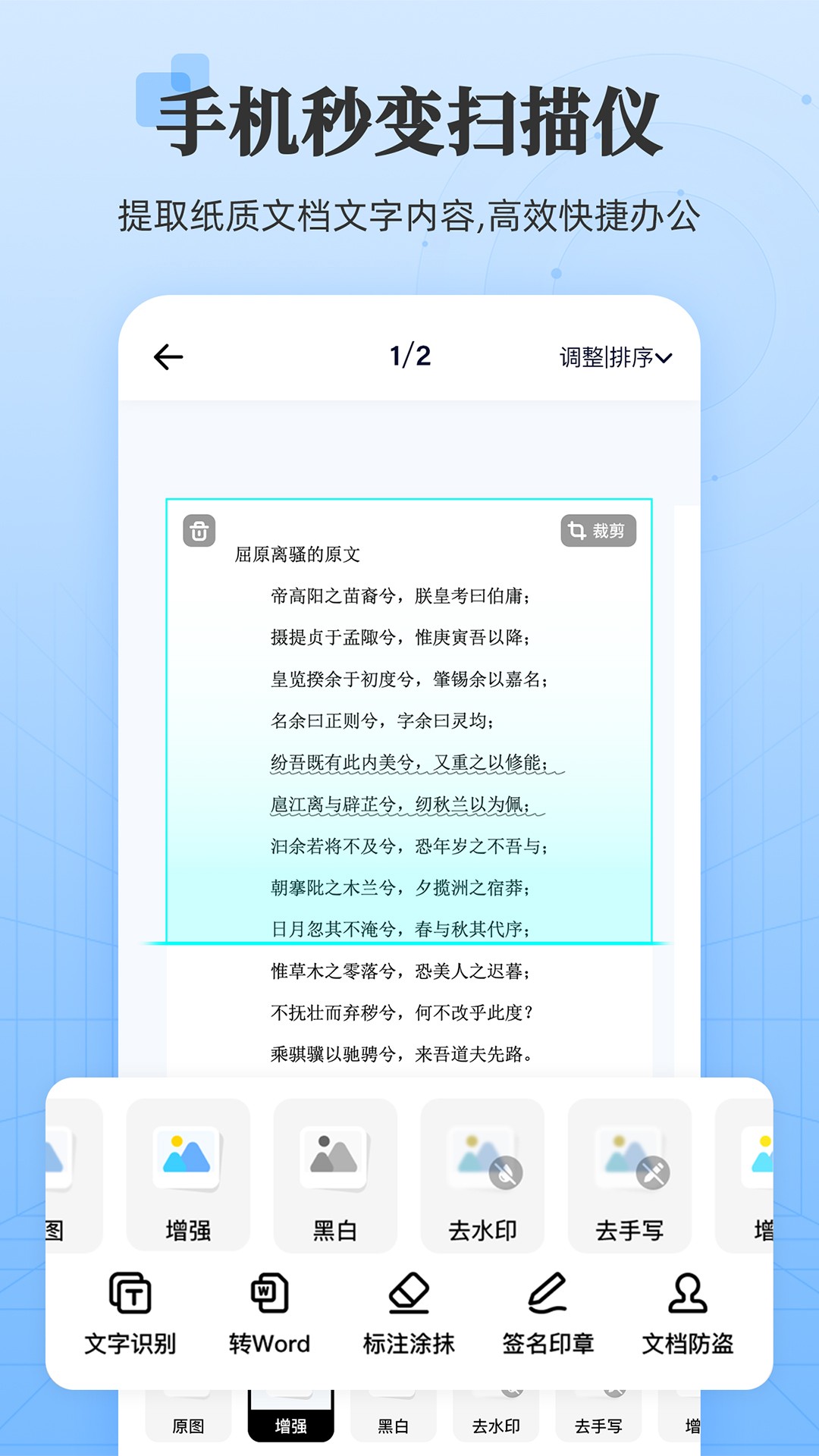 1、是款文件拍照识别的手机助手,软件功能十分强大。