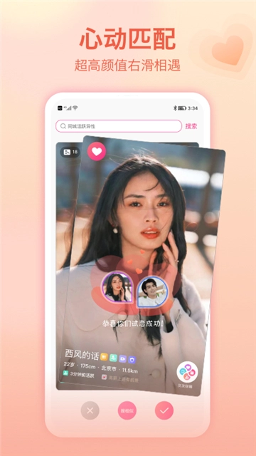 1、app也提供了智能推荐匹配功能,通过用户的个人资料、喜好、兴趣等信息进行推荐,使用户更容易找到心仪的对象。