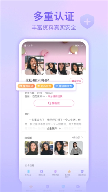 3、此外,世纪佳缘6.0版app还不断完善自身的服务和用户体验,提供更多更好的功能,并加强用户的安全保障。