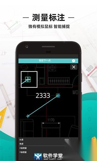 3、然后在图纸点击需要标注的位置,这个时候单指长按屏幕,可以弹出捕捉框,这样就可以根据捕捉点精确选择需要标注的位置。下方会显示对应的坐标点数字,如果确定坐标点正确,那么在需要标注坐标文字的地方点击一下,就会生成坐标标注。