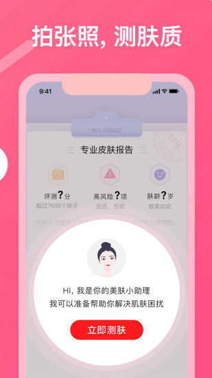 1.智能测肤,专业分析:美图美妆AI测肤能够通过自拍智能识别用户肤质、肤龄、肤色、黑眼圈、黑头、痘痘(含痘印)、斑点、痤疮等各项皮肤问题,生成专属皮肤分析报告并推荐相应解决方案,实现有效护肤。
