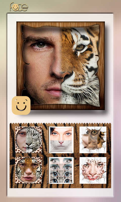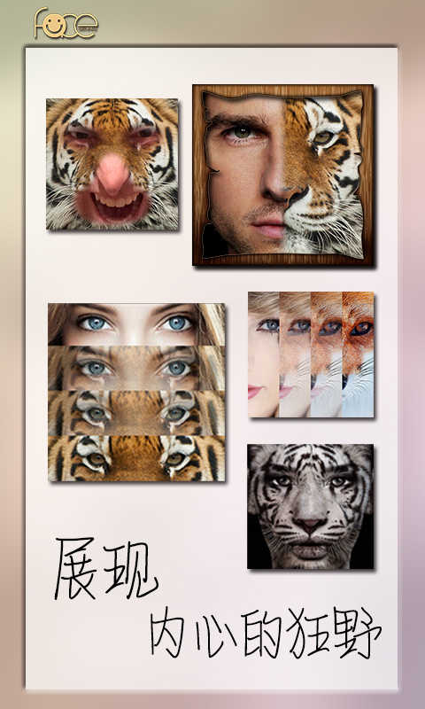 它能将你照片中的人脸,变成半边动物脸,还可更换动物眼睛、鼻子、嘴等部位,或者让人脸跟动物脸无缝融合,使平淡无奇的照片变得趣味丛生,过目难忘。