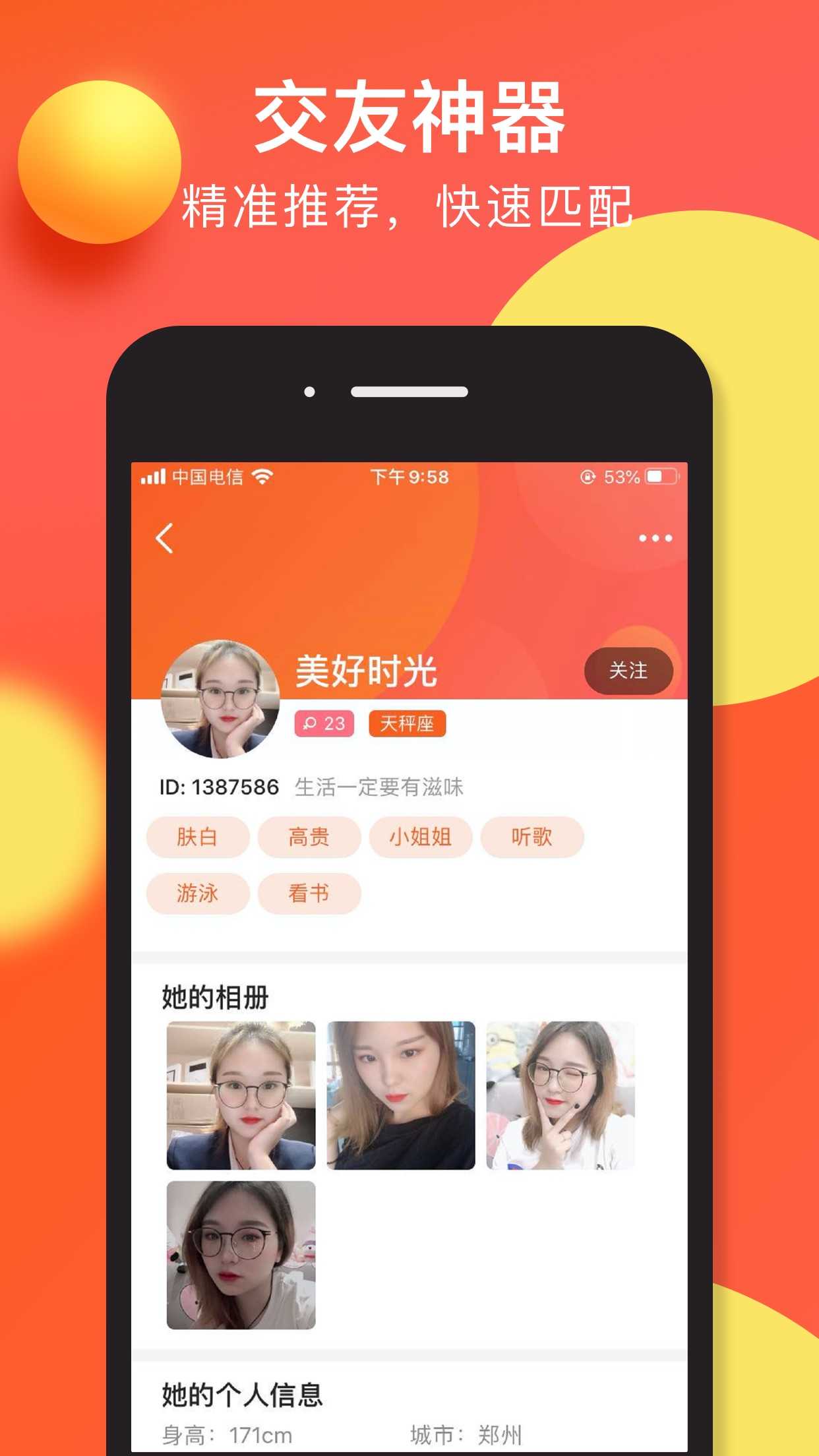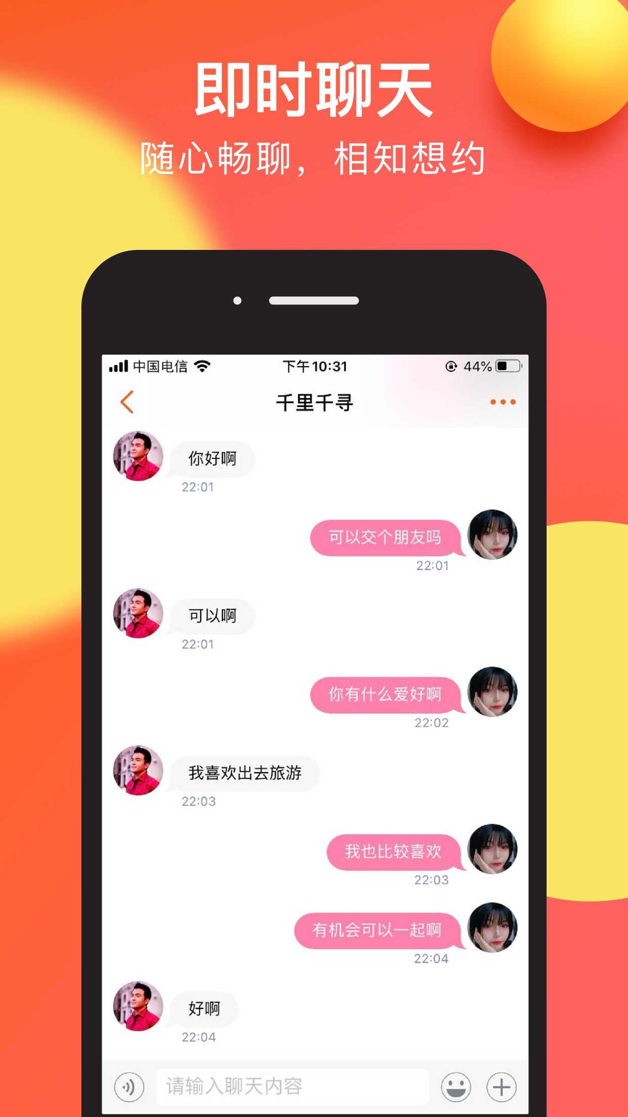 全新的玩法,全新的功能让你和主播零距离接触,感受心仪的她优美辣舞和声优动听的魅力。在这里,你可以和约单约玩,送比心,可以同城附近交友,同城约会,可以和主播在线聊天交流情感,享受真人视频跳舞的欢乐,类似你在soul、积目时的网聊恋爱的感觉,是一款真正的直播交友、聊天社交软件。