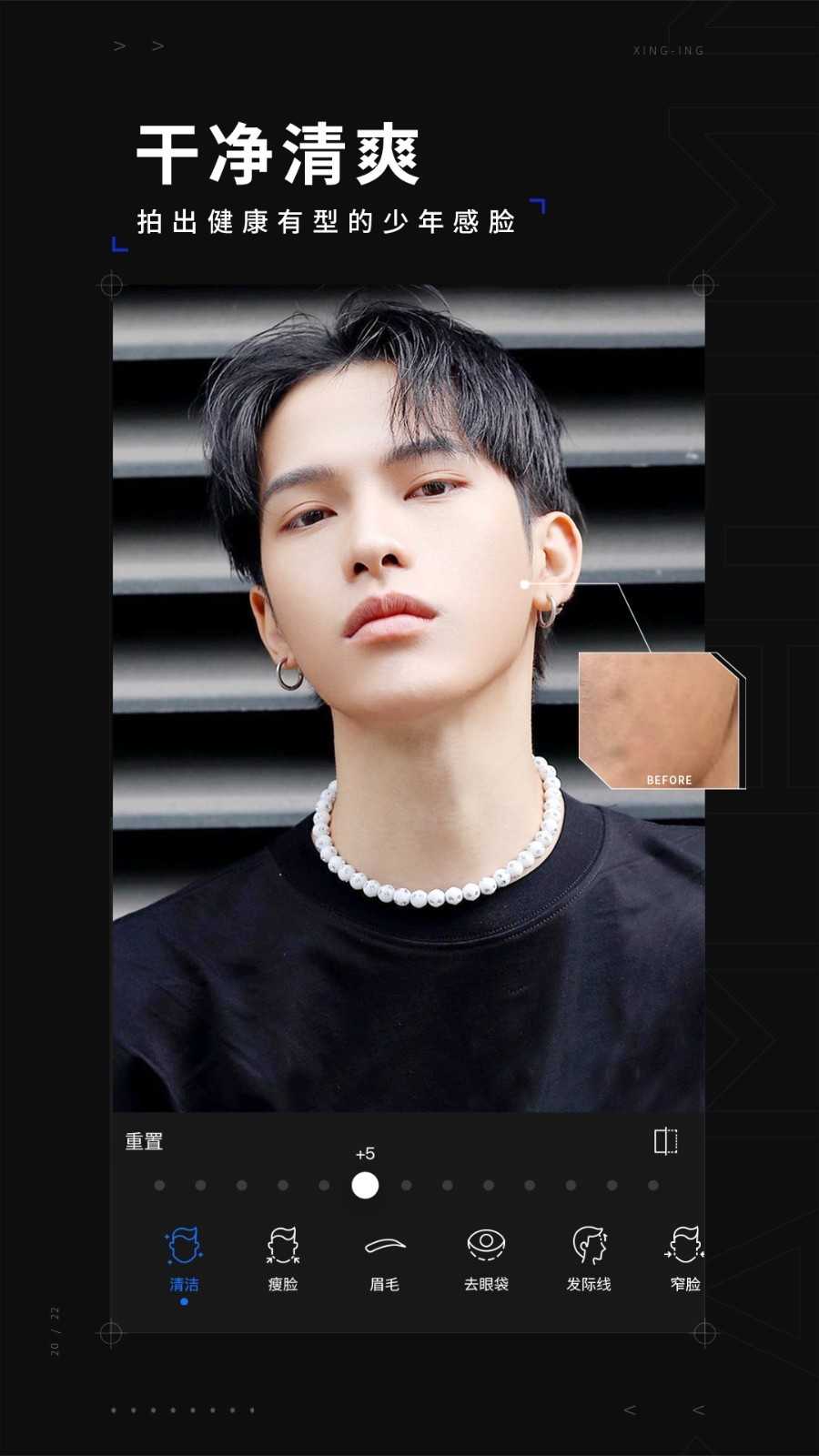 3、型影相机风格选择+提供8种流行和原创的美容风格,一键找到你的最佳美容水平。