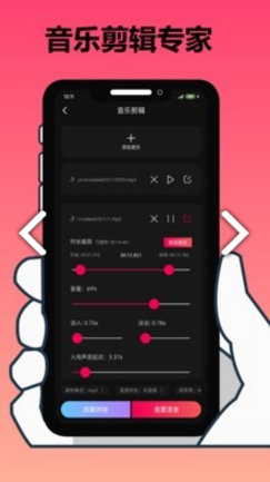 2、丰富的音乐剪辑功能,其中有添加音乐、编辑音乐和淡入效果添加等功能;