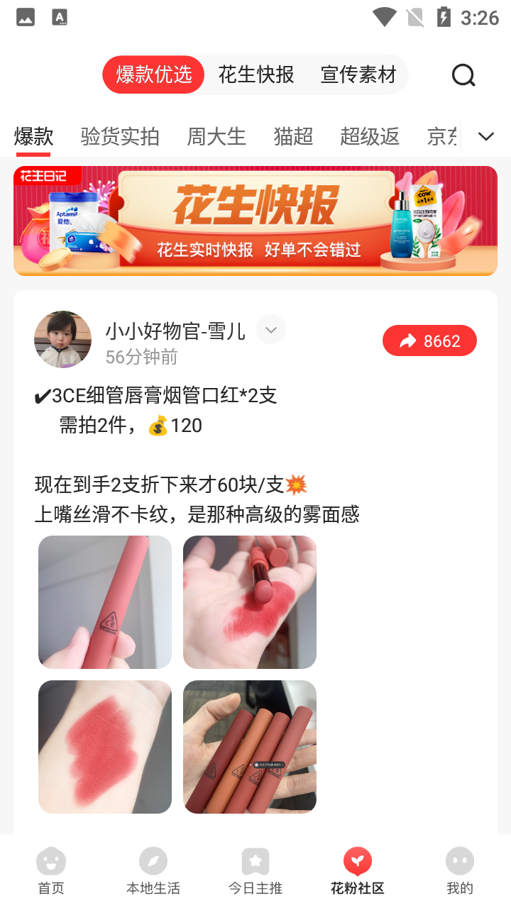 花生日记2023版是款非常出色手机购物软件,汇集全网最新优惠、促销、产品,提供超丰富的商品种类,让用户轻松在线买买买,可以自己领优惠券在购买的时候有提成,重点是还免费哦,一亿人都在用的省钱APP。