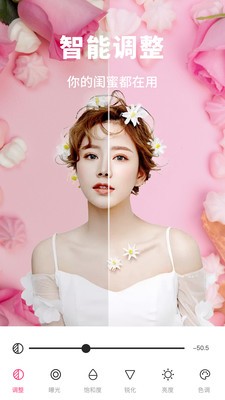 抠图:智能抠图,支持自定义模版,一键抠图背景任意换。 美妆:芭比粉、清透、烟灰、自然、樱花粉、粉紫、粉嫩等海量装扮一键上装;