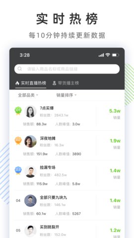 5、行业大盘:每60s统计当前时段带货直播热度及实时观众热度、上架商品热度等数据,支持查看直播间各品类商品热度汇总数据,了解直播间卖货风向。