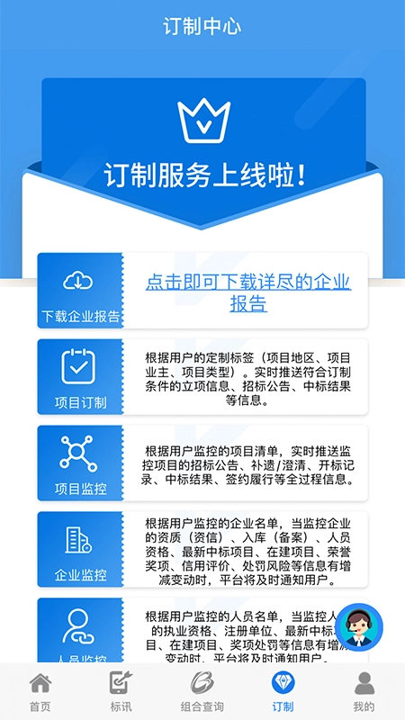 3、智能定制,同步提醒:每天通过手机接收您定制的招标采购信息和项目信息更新提醒,可以随时随地修改调整您的信息定制需求。