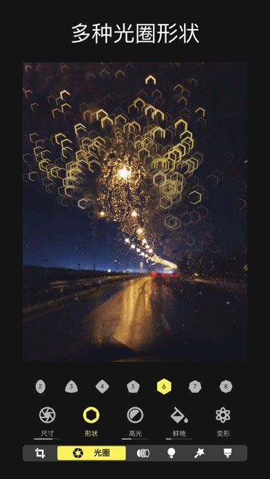 - 各种专业和趣味光斑效果,模拟不同的快门叶片形状;