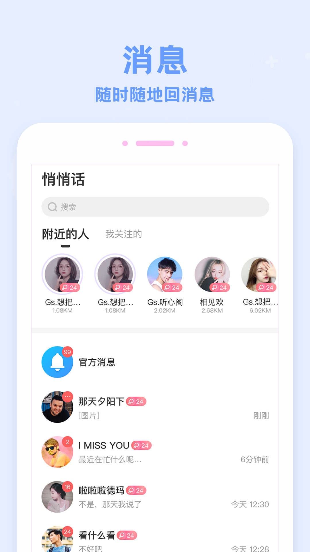 在这里,你可以随时找到心仪的人儿聊天,彻底赶走孤单,摆脱单身。也可以随时找到兴趣相投的小伙伴,结交有趣的灵魂。