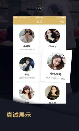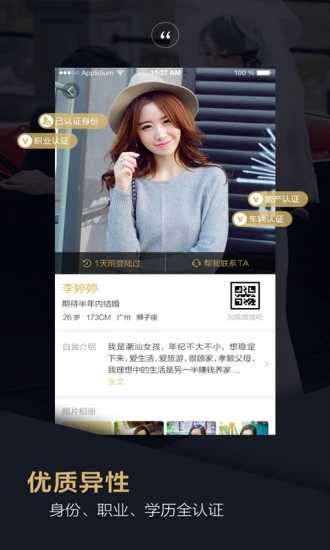 【品质】汇集单身精英男女,剔除各种虚假用户,让用户结识优质异性,牵手意中人。