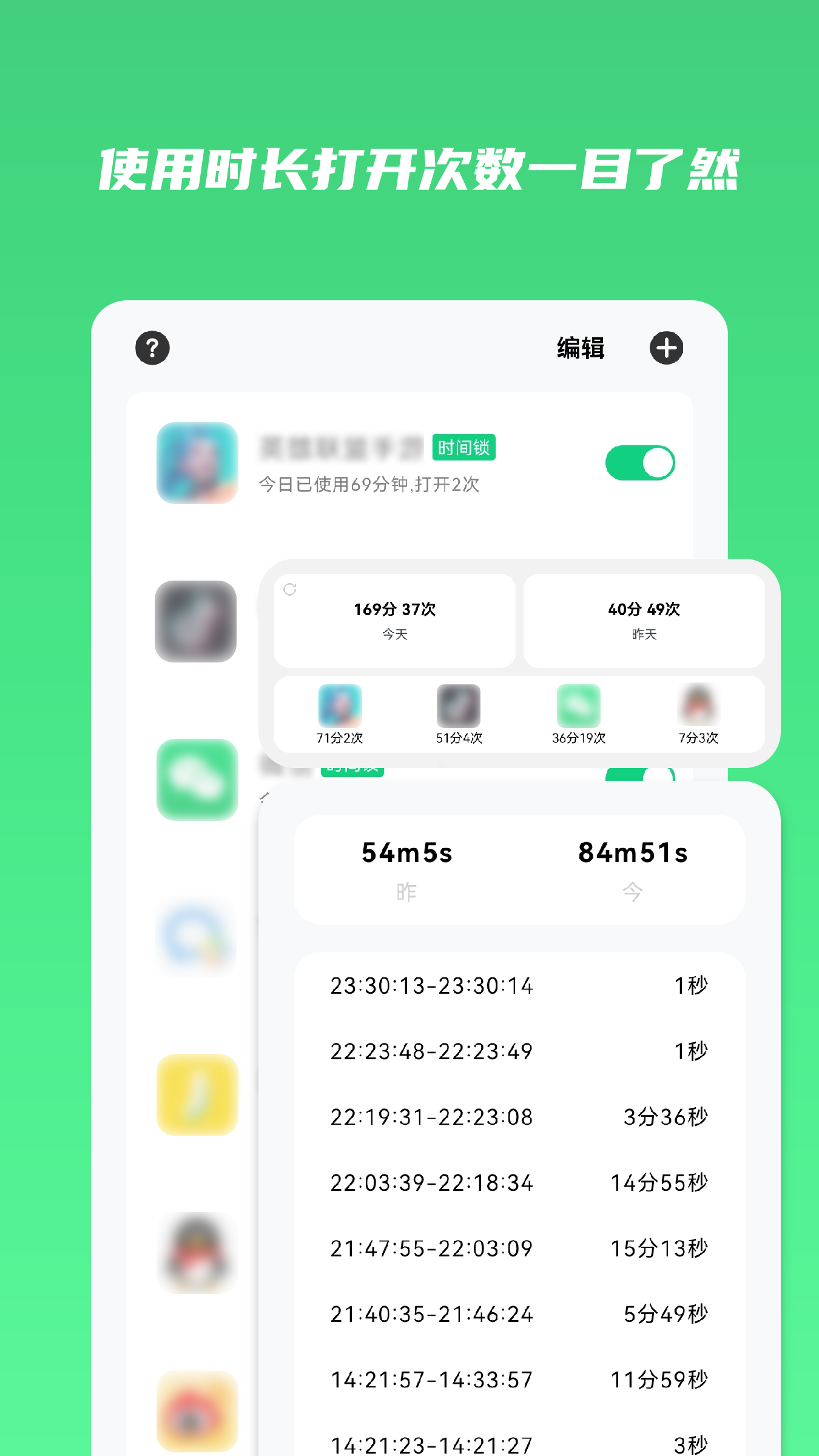 记录应用每次使用时长和时间段,为应用生成全年使用记录,帮助你分析对应用的依赖程度。