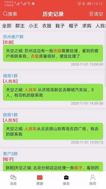 5、历史记录,每一次的关键词提醒都为用户进行了记录,用户能随时快速查看;