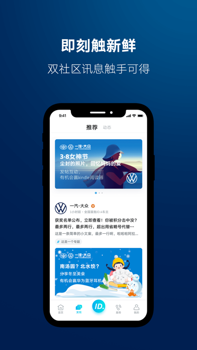一汽大众超级app新版本,一汽大众旗下连载车辆、车主以及官三方的智能服务工具,新版本风格再变,社区中有关品牌以及行情的讯息触手可及。ID专属页面闪亮登场,一汽大众超级app车联网,自己的车辆账号相关活动资源,一键查看,各类优惠活动政策简单上线立刻参与,精彩万千。51苹果助手提供一汽大众超级app下载,一汽大众超级app官方下载。